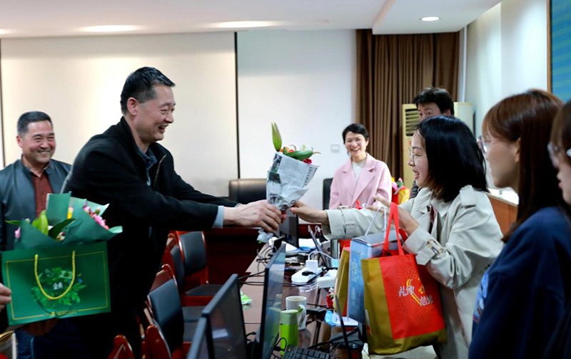 陽春三月,繁花似錦。設計院公司引大濟岷項目組集中設計辦公室卻是一派繁忙,無人賞花。確切的講,從正月初三起,這個團隊就已經(jīng)開始新年奮蹄疾、全力赴征程的戰(zhàn)斗。她們秉承著“金牛玉虎闖機遇,引大濟岷續(xù)偉業(yè)”的鏗鏘誓言,靠著“996”“白加黑”的非常規(guī)工作模式,攻克了我省最復雜都江堰供水區(qū)水資源配置問題,保障了引大濟岷可研進度,用青春繪就了一張張水網(wǎng)藍圖。馬勇仕一行向節(jié)日仍奮戰(zhàn)在一線的女職工們獻上鮮花,送上慰問品,并對項目組取得的成績表示祝賀。在得知設計團隊平均年齡34歲,且女職工占比近70%后,馬勇仕表示:這樣的團隊讓我們感到新時代女性建功立業(yè)的決心,更讓我們看到四川水利的希望,這是巾幗建功新時代的真實寫照;鼓勵全體女職工要敢于做追夢的奮斗者,再接再厲、再創(chuàng)佳績,以堅定的責任感和使命感,全力推動引大濟岷這一國家和四川水網(wǎng)體系的骨干工程早日開工建設。