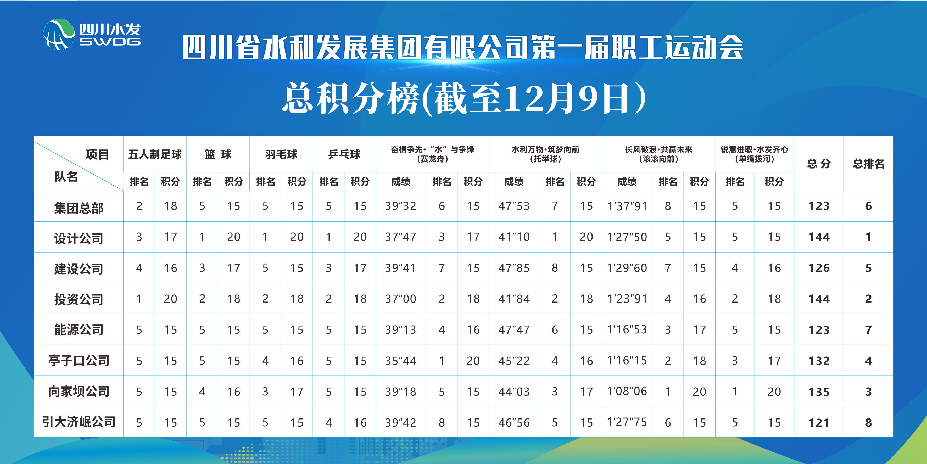 凝心聚力促發(fā)展,團(tuán)結(jié)奮斗向未來。12月9日,集團(tuán)第一屆職工運(yùn)動(dòng)會(huì)在成都市水井坊錦江體育公園隆重開幕。