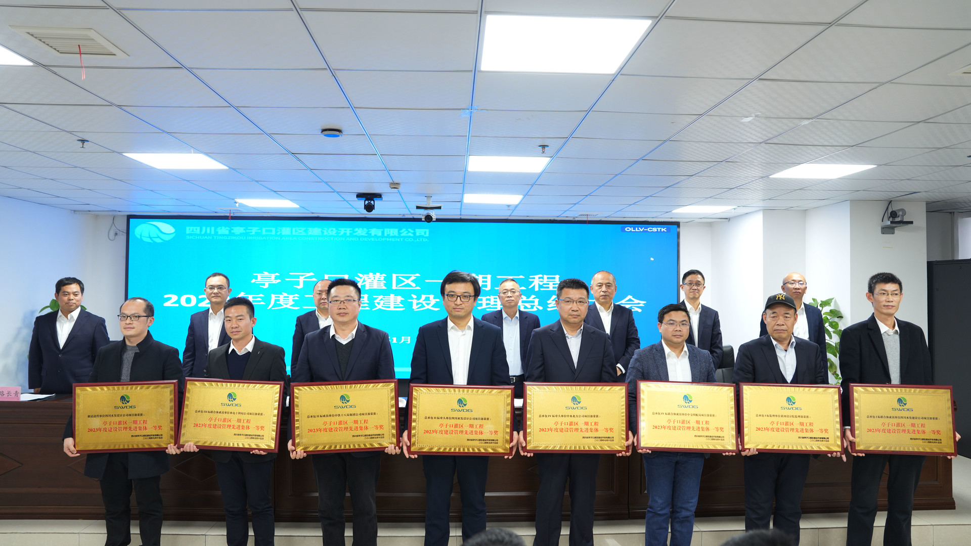 會議還宣讀了《關于表揚亭子口灌區一期工程2023年度建設管理先進集體的通知》《關于表揚亭子口灌區一期工程安全生產應急綜合演練先建集體的通知》,并為獲獎集體頒發獎牌。