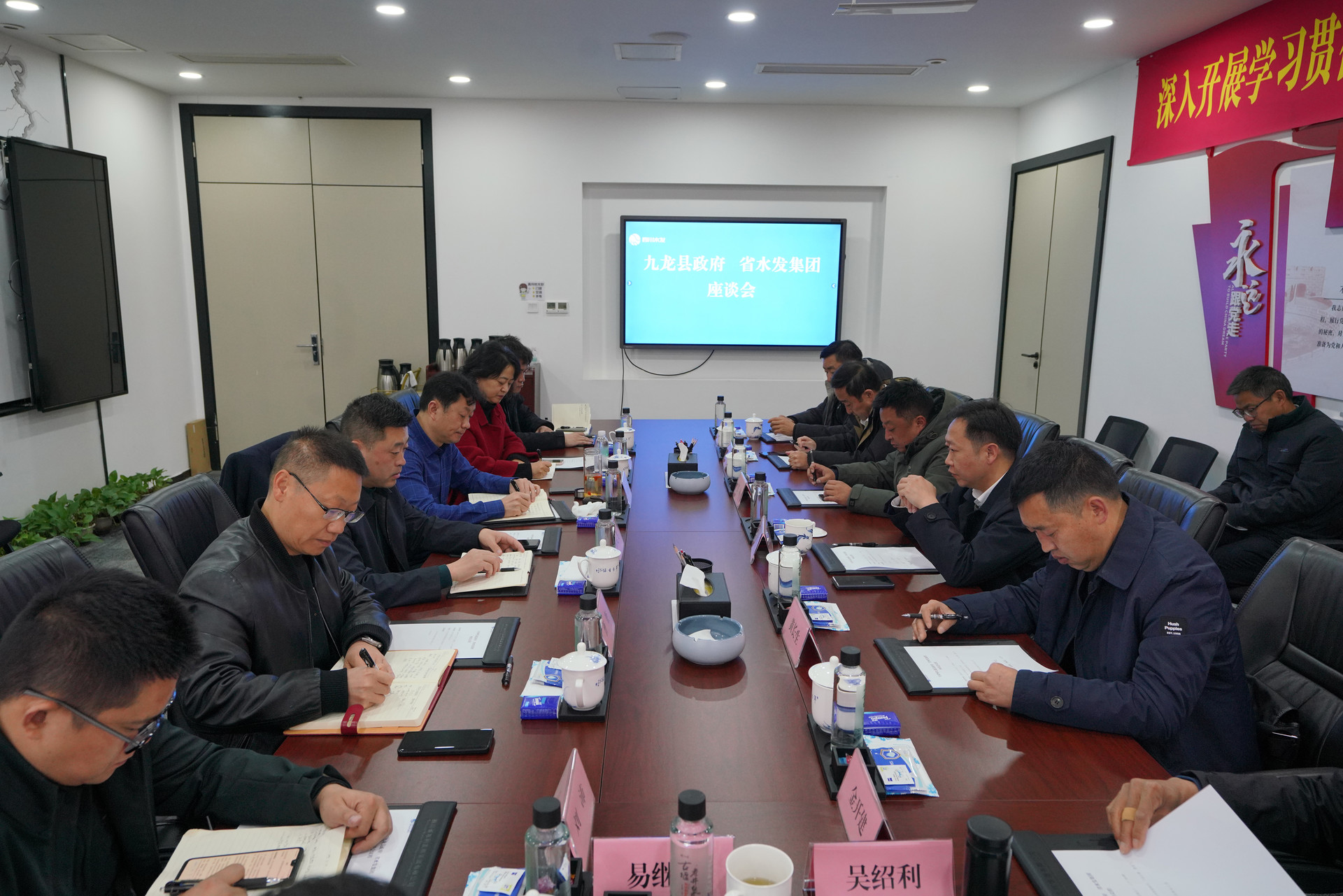 2月23日,集團黨委委員、工會主席唐克飛與甘孜州九龍縣縣委副書記、縣長方和俊一行在集團五會議室召開交流座談會,雙方圍繞三四溝、麻窩溝二級水電站早日復工復產(chǎn)等事宜進行了深入交流。