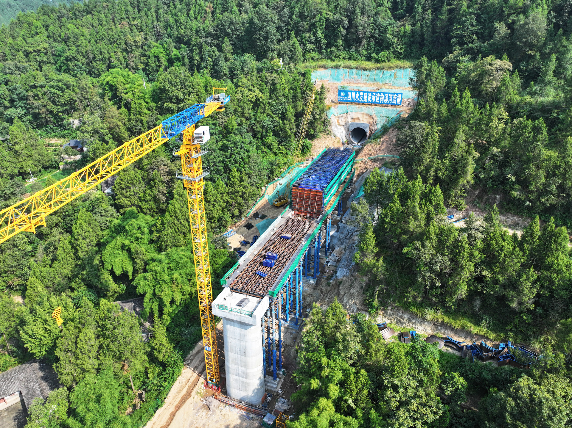8月26日,隨著預壓水袋排水泵的啟動,構(gòu)溪河渡槽首跨槽身支撐體系的預壓系統(tǒng)正式卸載,標志著構(gòu)溪河渡槽正式進入槽身混凝土施工階段。